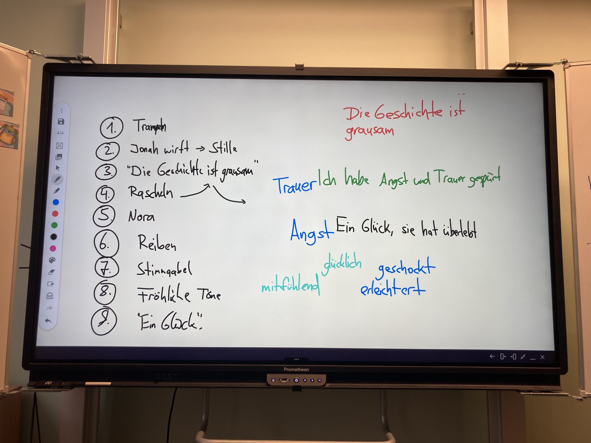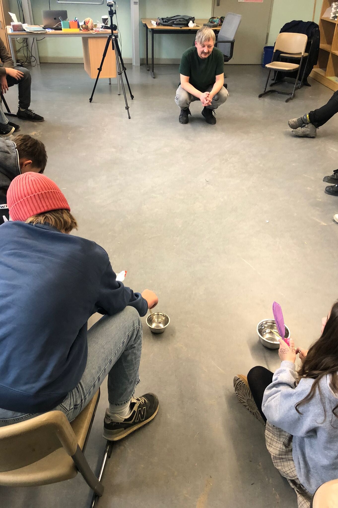 Schon in den ersten Minuten zeigte sich: Diese sechste Klasse ist etwas Besonderes. Sensibel, reflektiert, offen – und von Anfang an bereit, sich auf Neues einzulassen. Andi und unsere Workshopleitung Ksenia nahmen die Schüler*innen mit auf eine Reise, die musikalisches Experimentieren mit historisch-politischer Bildung verband.
